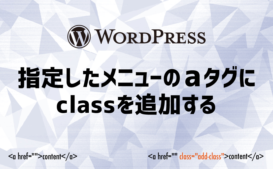 カスタマイズすることで、メニューのaタグに class=”add-class” を追加してみます。