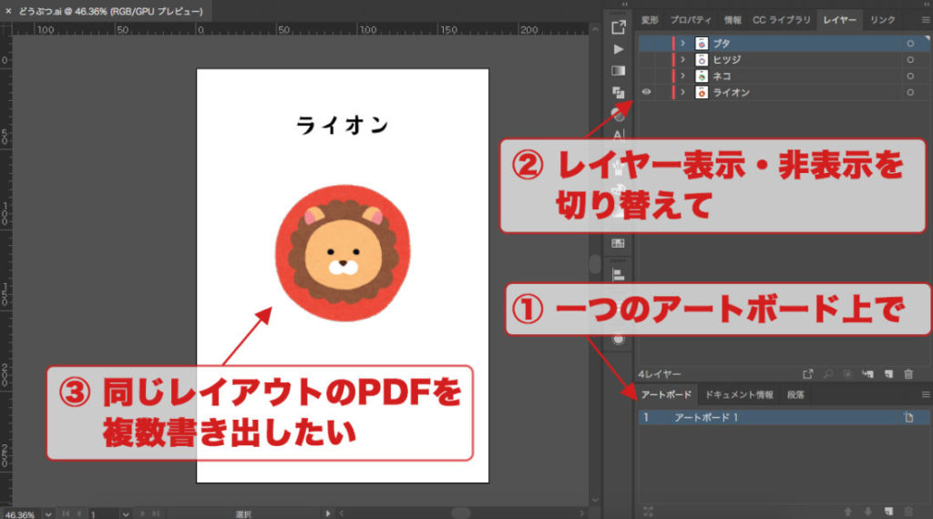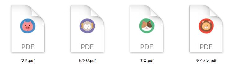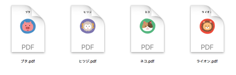 ※アートボードで分けていないため「PDFを書き出す操作」を4回行う。