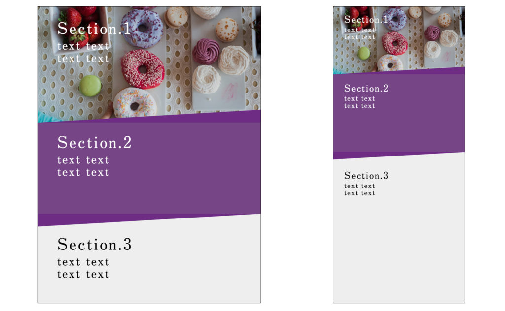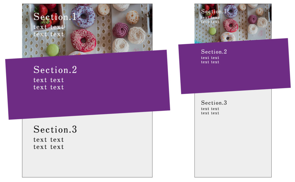 例えば、Section.2の背景要素を傾けるとこういう感じになりますね。