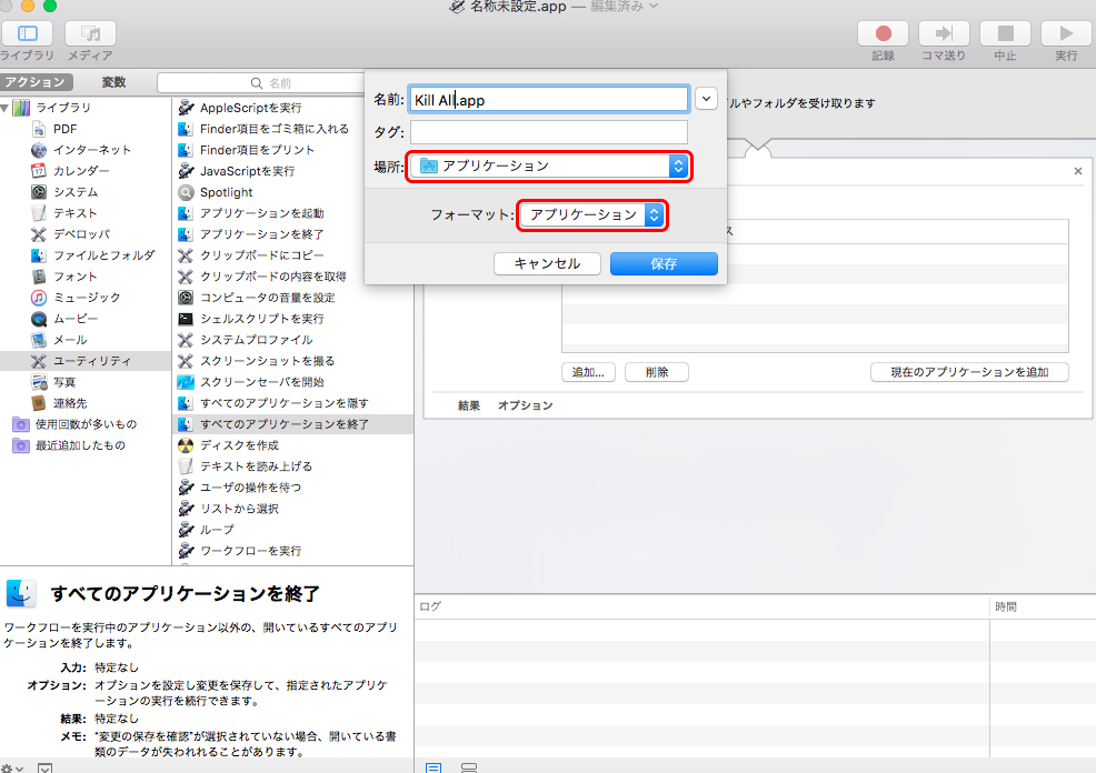 フォーマットも「アプリケーション」に。