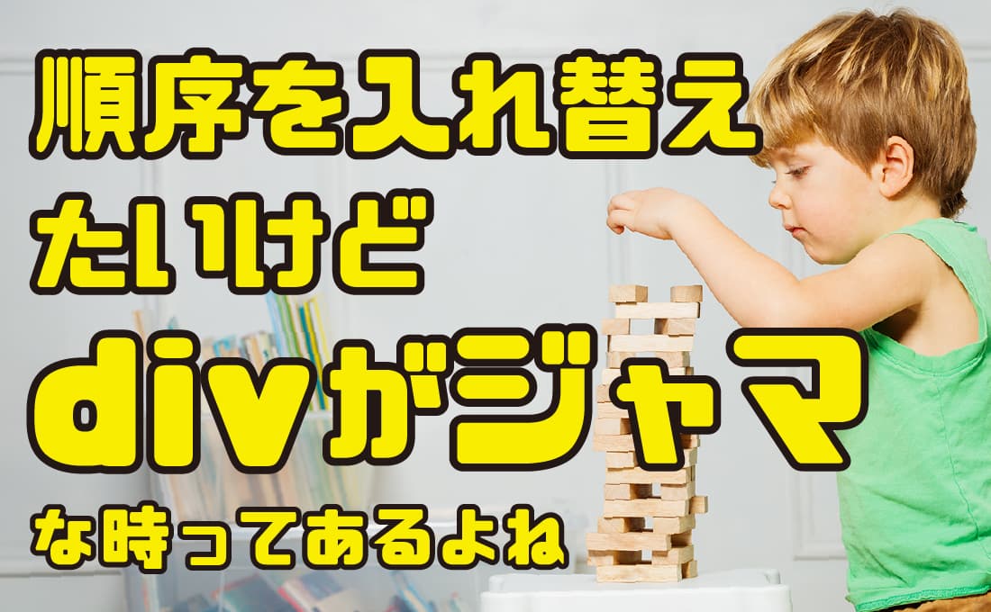 flex で横ならびにするために「見出し(h2)」と「抜粋文(p)」を .txt-wrap で囲っていますが、スマホでは h2 を画像の上に配置したい。