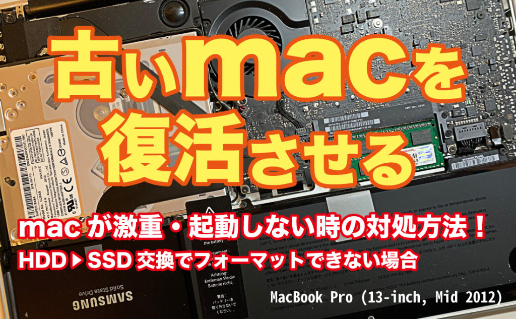 古いmacが激重・起動しない時の対処方法!HDD→SSD交換(換装)でフォーマットできない場合【MacBook Pro (13-inch, Mid 2012)】