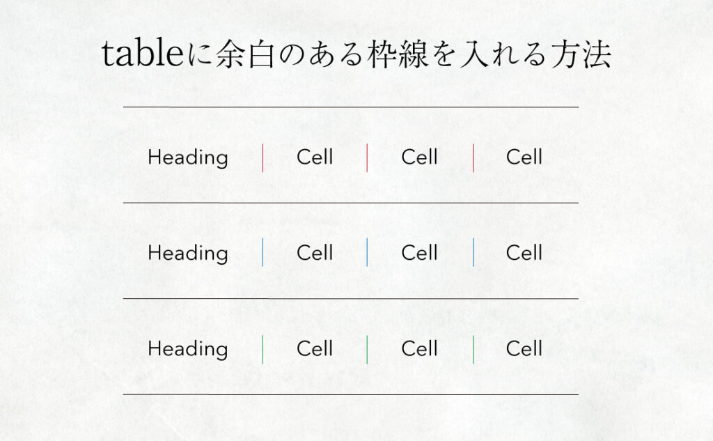 tableに枠線を残しつつ隙間の空いた区切り線を入れる