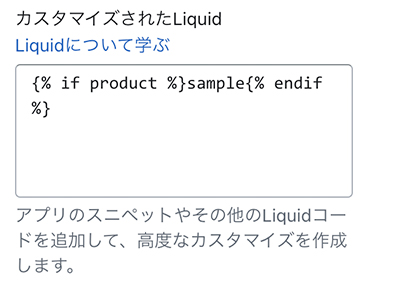 "info": "アプリのスニペットやその他のLiquidコードを追加して、高度なカスタマイズを作成します。"