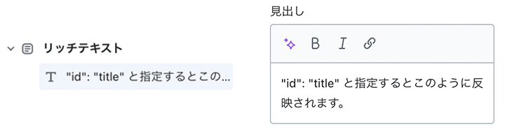 idプロパティの値に title と指定すると、カスタマイズ画面で入力したテキストが項目名に反映されます。