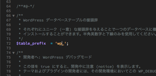 Xサーバー側の「テーブル接頭辞」を、ロリポップ!側の「wp-config.php」に合わせます。同じだった場合は変更しなくて大丈夫です。