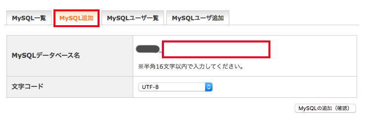 WordPressインストール時に自動で作成することも出来るのですが、自分で作成した方が管理しやすいため私は自動作成はしていません。画像の様に設定して下さい。