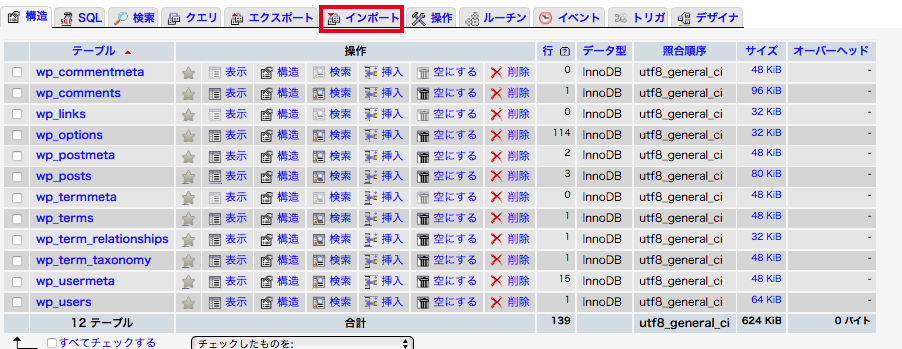 この操作をするにあたり、ロリポップ!で使用していた、元のsqlファイルは絶対に捨てないように必ず保存しておいて下さい。万が一操作を間違えた場合復元する先ほどの状態に復元させることができます。